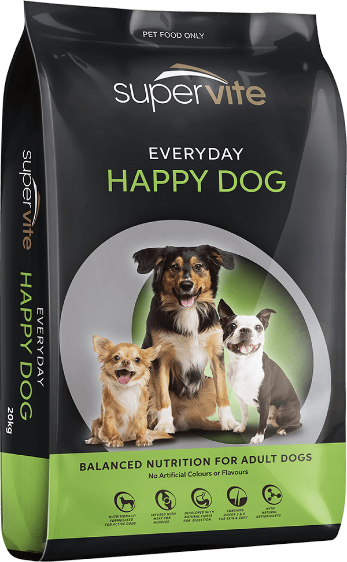 Super Vite Everyday Happy Dog is a complete dry dog food specially formulated to promote the health and wellbeing for domestic adult dogs.
