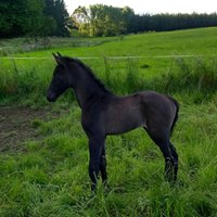 Jet black filly with a star. What more could you want. Nellie has a royal dressage pedigree. Her sire Fantastic is a well known Hanoverian Stallion standing at the Famous Gestut WM in Germany.