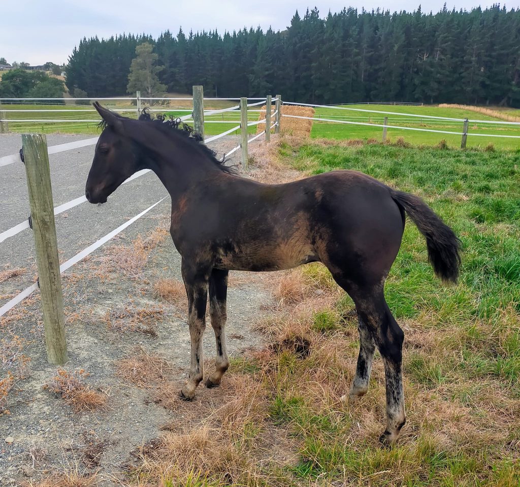 After Sabrina produced such a beautiful filly (Whiterocks Fenella) to Fantastic we decided to repeat the cross and got this super elegant carbon copy black colt. He was purchased as a month old foal and appropriately named Whiterocks Fantastic. Full of character and very friendly this boy knows he is special. He was awarded an excellence at the NZWB inspection and has gone to the best home where he will have every chance to succeed.