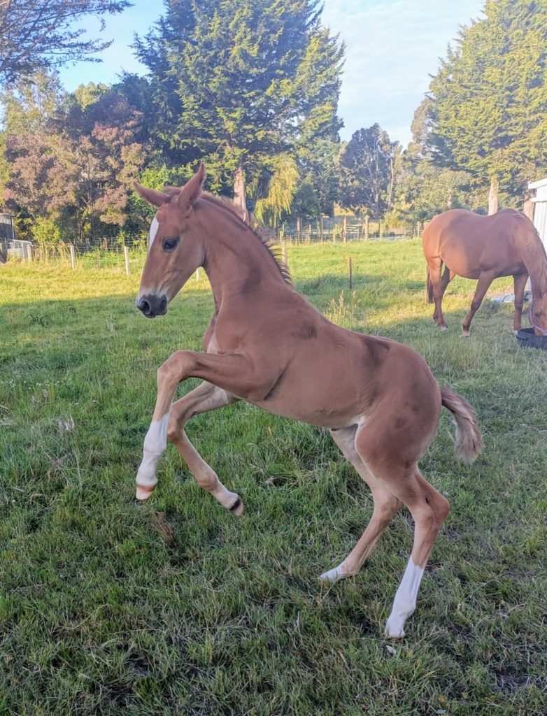 Empire has exceptional paces with an active hindleg, this is a unique opportunity to acquire a foal by imported Oldenburg Epiton MD, who is by multiple Bundeschampionate winner and German Olympic squad member Escolar. Escolars progeny are highly successful and sought after all throughout Europe. Epiton MD has just recently started competing and has taken out every young horse class he has entered including the South Island overall supreme champion young horse on 81.6%. Empire is a very fast learner and has been very easy in all his handling lessons. EMH 15.3 to 16.1hh he would be a stunning and oh so elegant addition to some lucky persons paddock.
