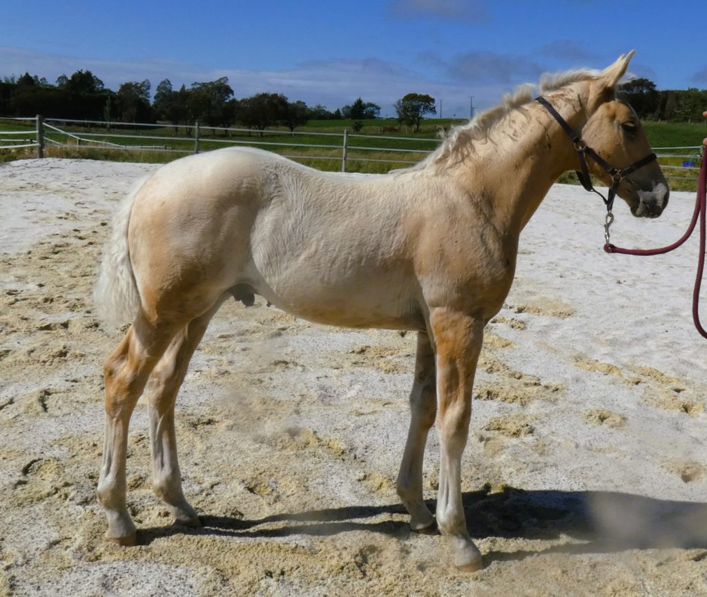 Bluey is a magnificent palomino warmblood colt. He is very correct with elevated elastic movement and huge presence. Ferns biggest foal so far he is genuinely impressive and is expected to mature 16.3hh – 17 hh. He is a friendly confident boy who has been easy to teach and learnt all his handling lessons easily. Pictured above at 3 months of age. Bluey is a genuine high level dressage prospect, but would also be suitable for hunters or the show ring.